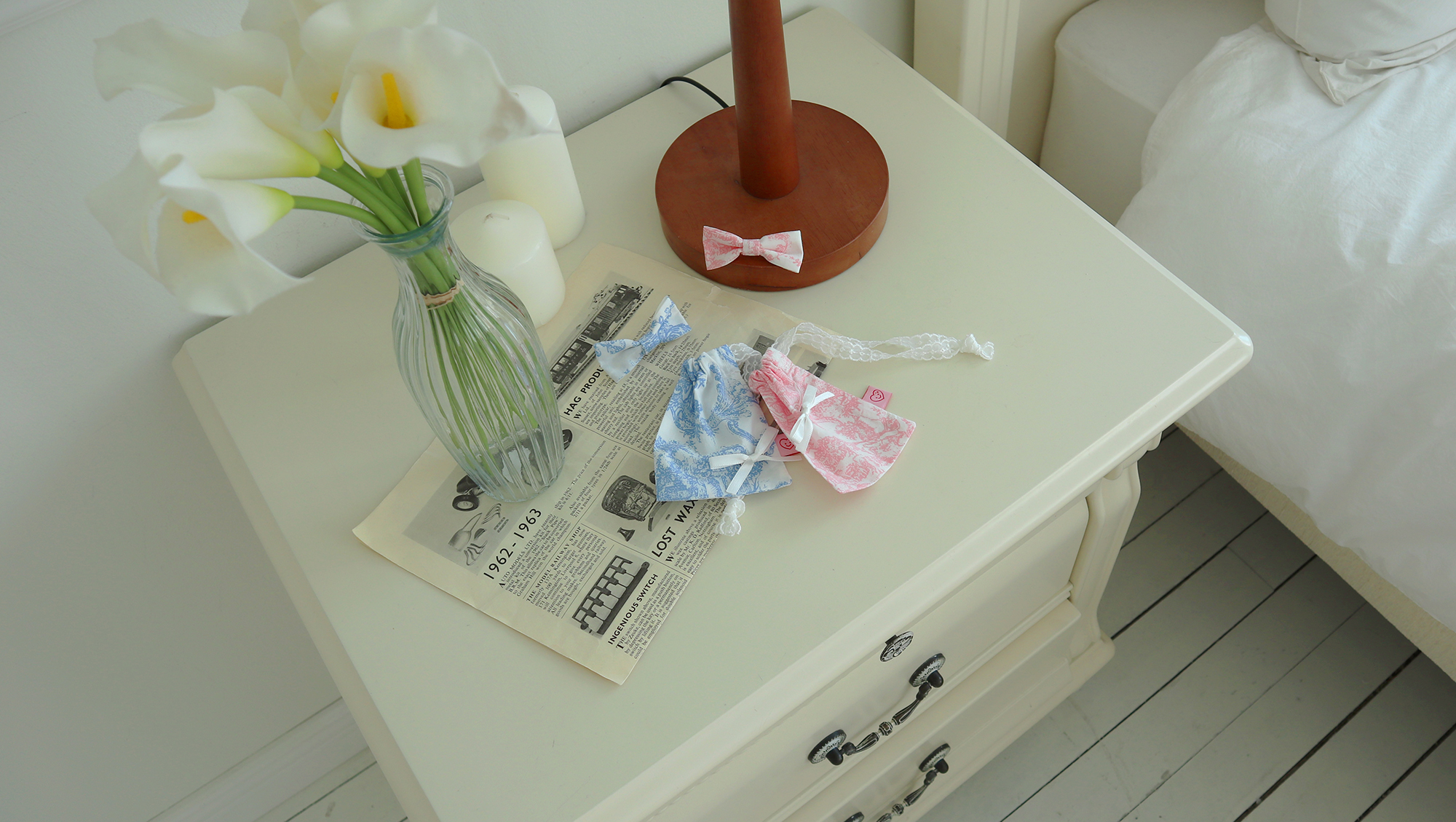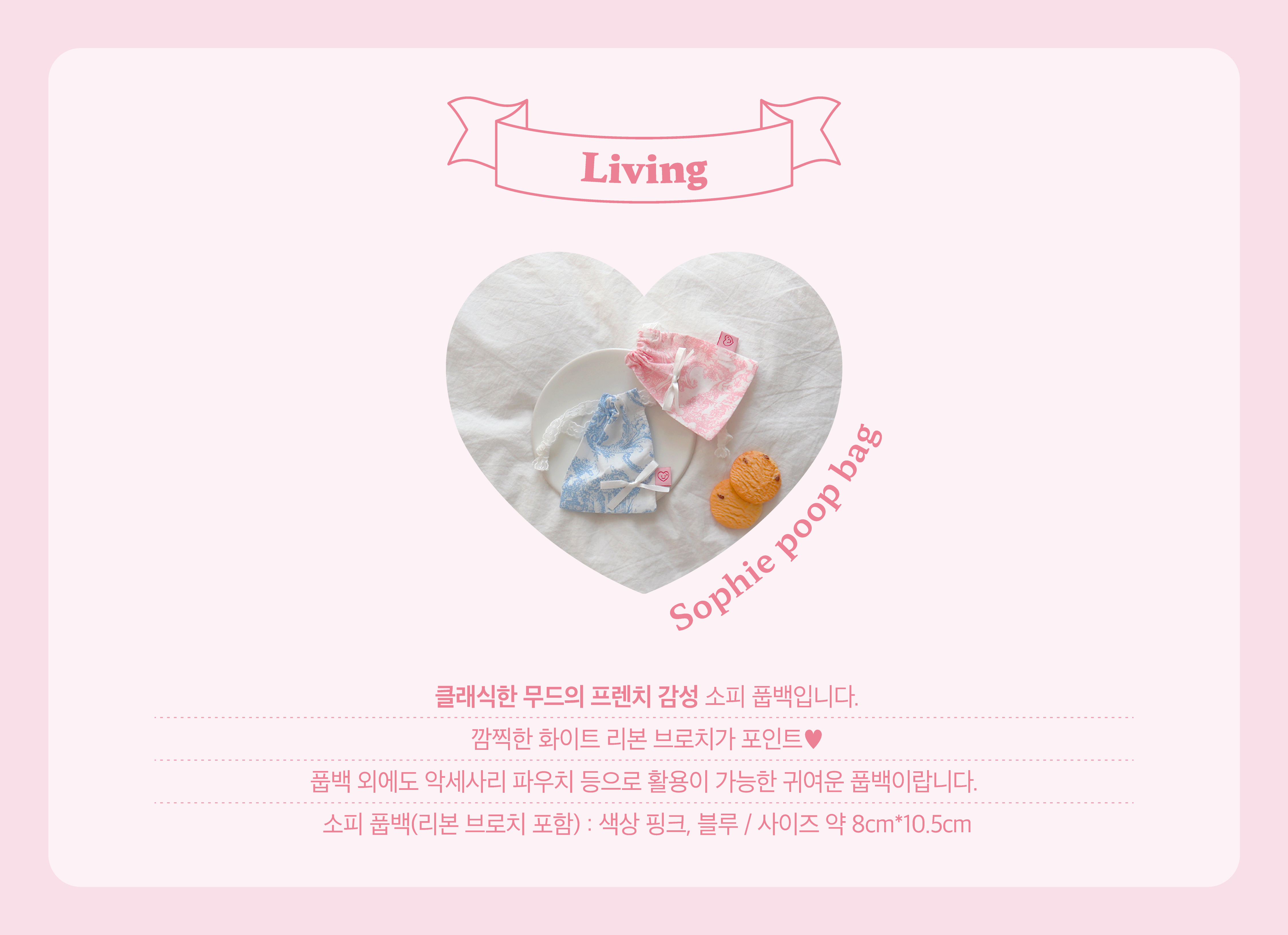 소피 풉백(리본 브로치 포함) : 색상 핑크, 블루 / 사이즈 약 8cm*10.5cm
