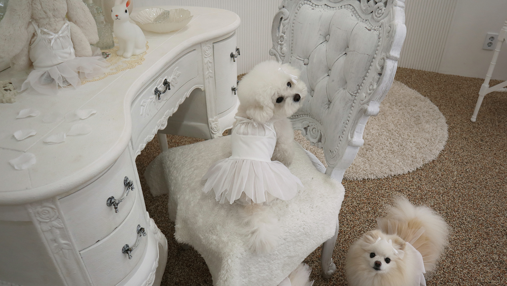 스완 튜튜 드레스의 챠밍 포인트는 바로 상의 리본 포인트와 꽃잎 치마 라인!