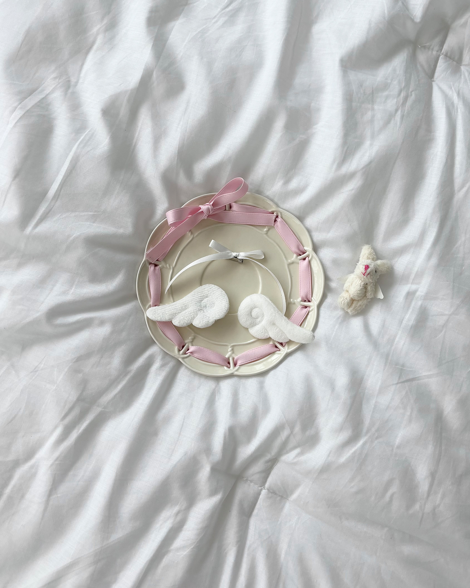 앙쥬 브로치세트(3pcs) : 색상 화이트(날개 한쌍+리본) / 사이즈 약 7cm