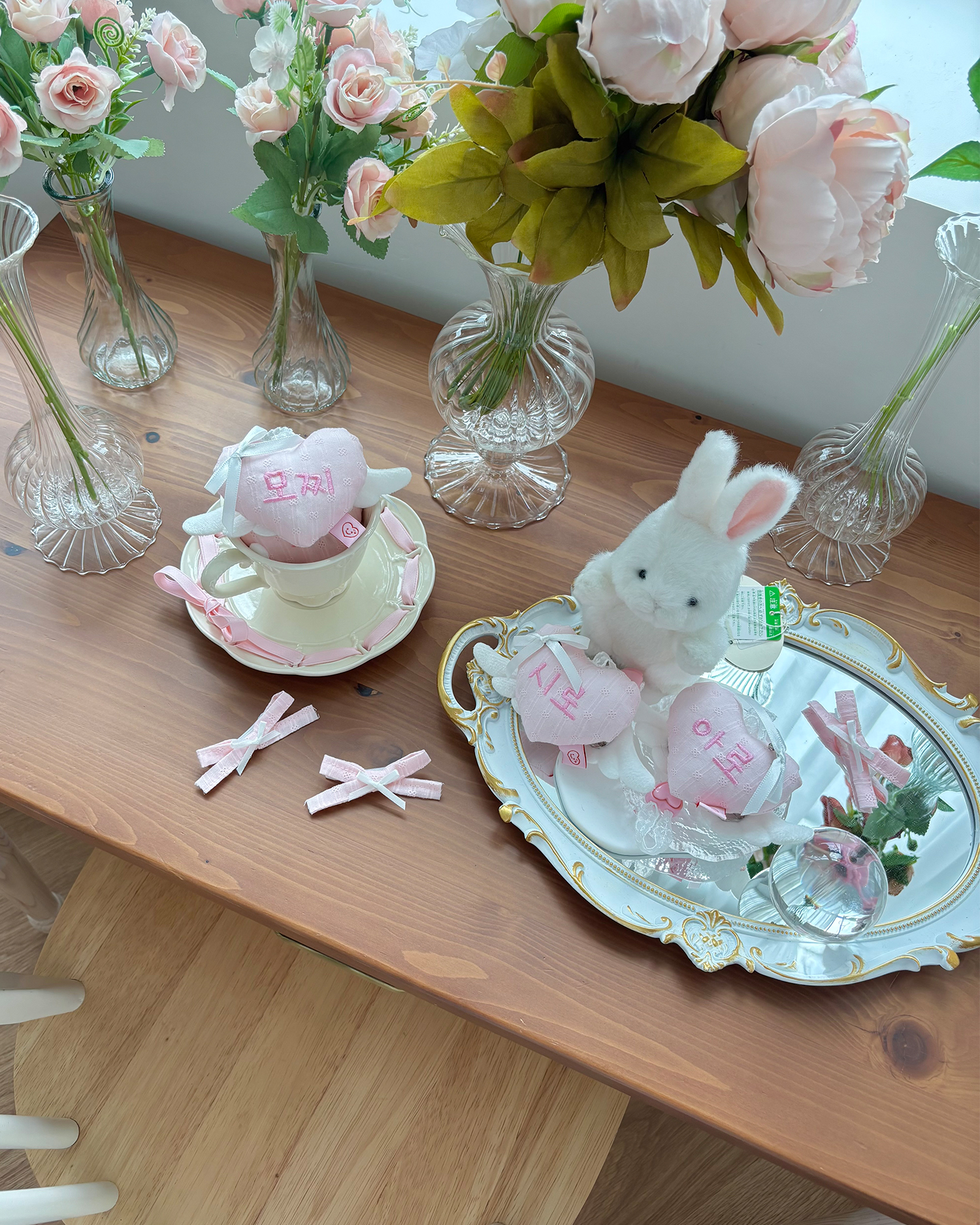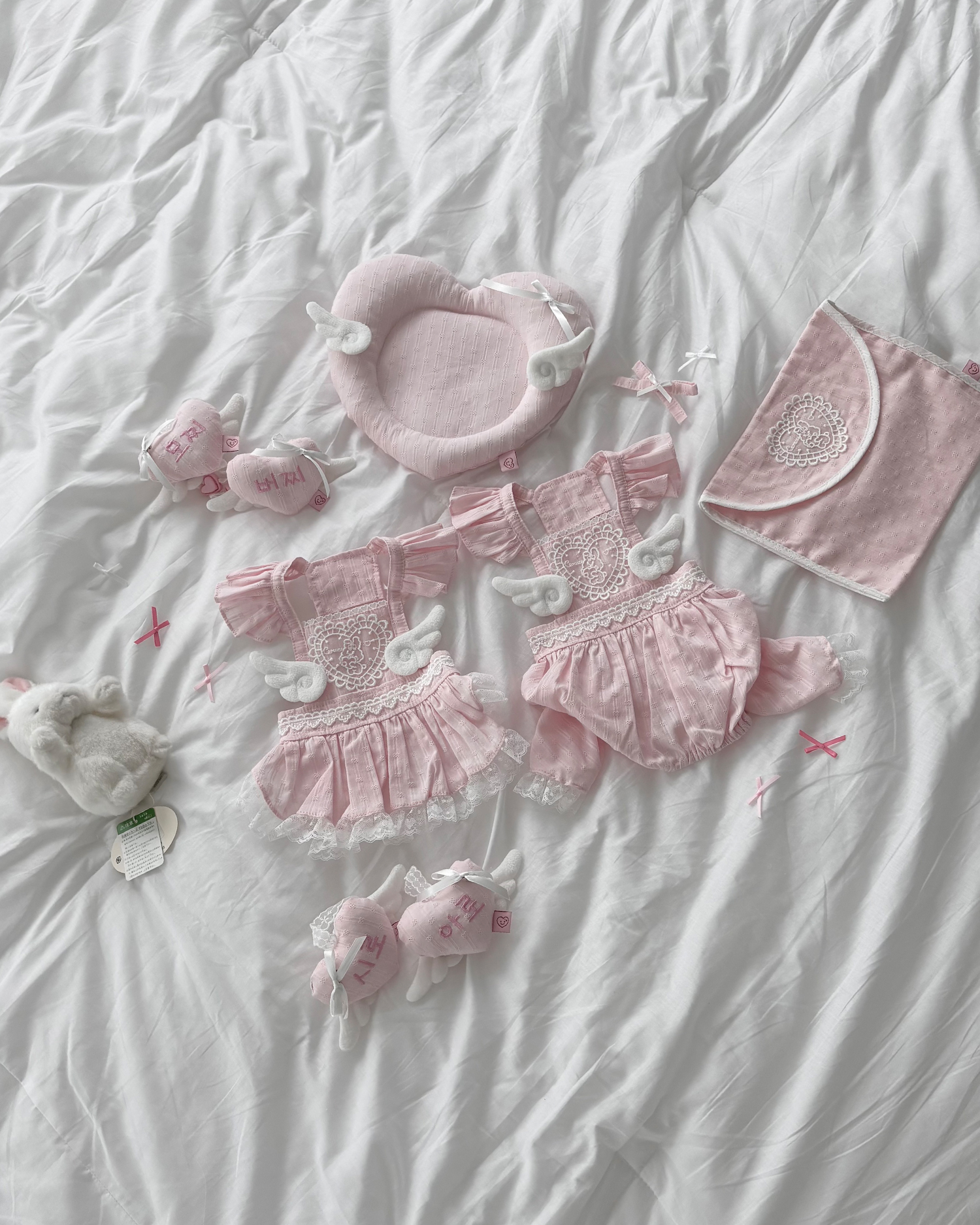 앙쥬 시리즈와 찰떡 콩떡♥ 천사 날개 브로치와 리본 브로치 세트입니다.