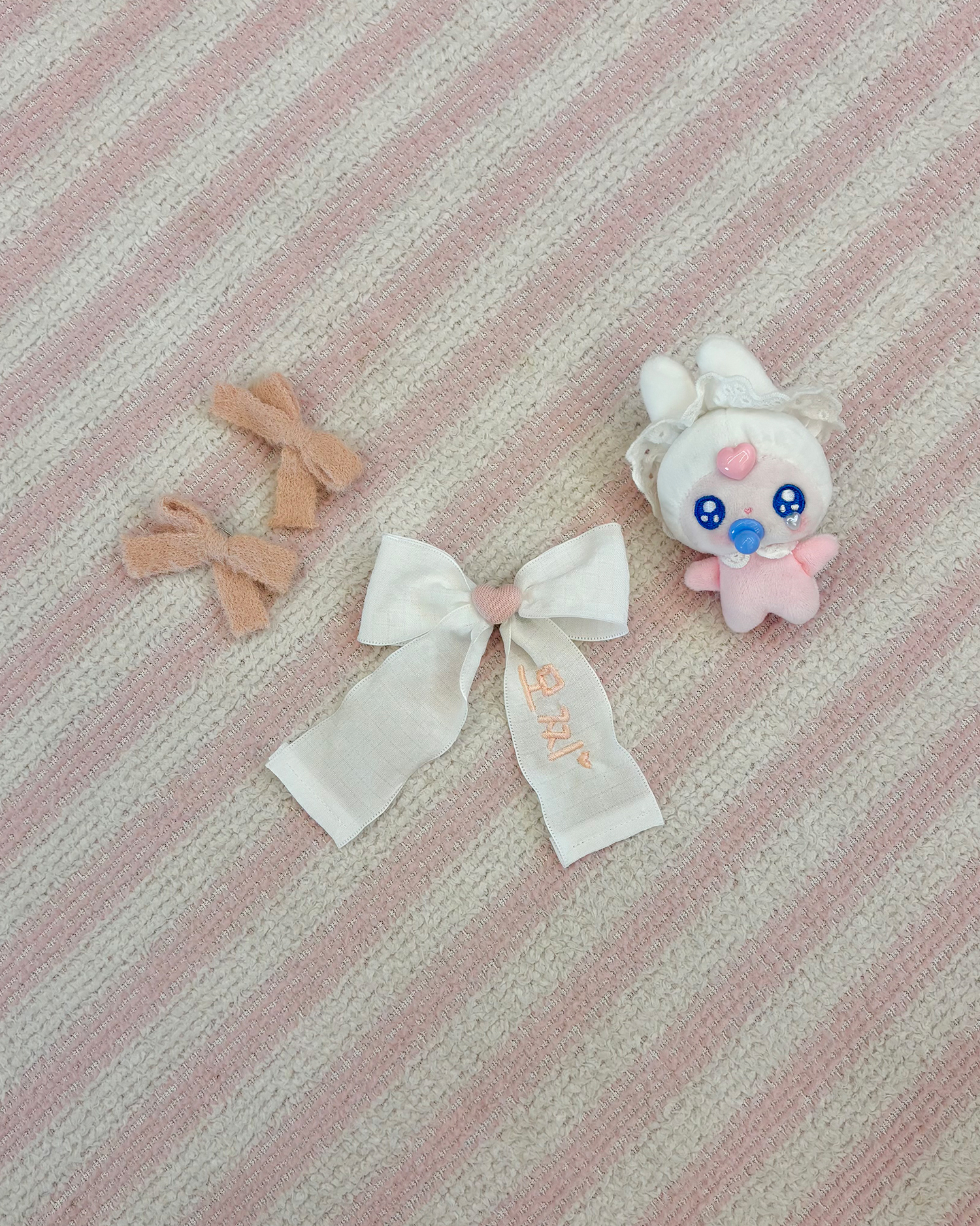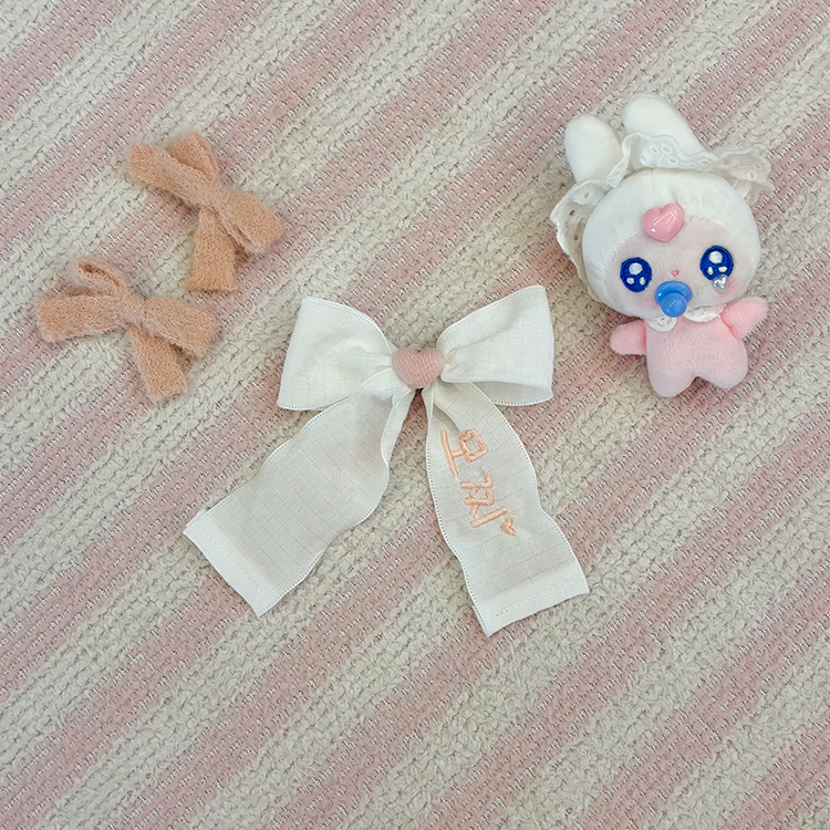 리본 네임택 : 색상 화이트 리본&피치핑크 자수 / 사이즈 약 10cm